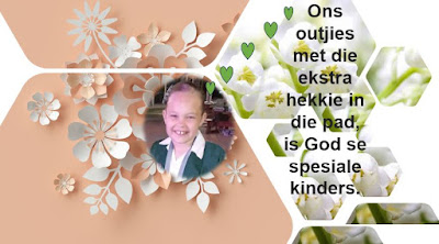 Dan wil ek sommer ook vir tannie Christelle dankie sê dat sy deur harde werk en daadwerklike handeling vir ons 'n voorbeeld stel. Tannie Christelle het 330 koekies in die laat ure van die aand gebak en met liefde verpak, kaartjies gemaak en geknip - amper 'n week lank - ek weet, want ek wou nie gaan slaap het, voordat tannie Christelle nie klaar was nie. Volg hierdie voorbeeld na, ook as julle die ouers van kinders is - ons leer waardevolle dankielesse!!!